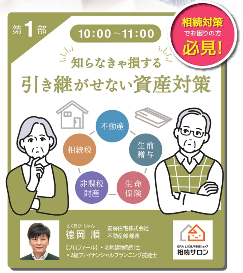 将来のお金の不安や、相続で「何から手をつければいいの?」というお悩みをお持ちの方に、とても役立つ2部構成のセミナーです。お気軽にご参加いただけますので、ぜひこの機会をご活用ください!